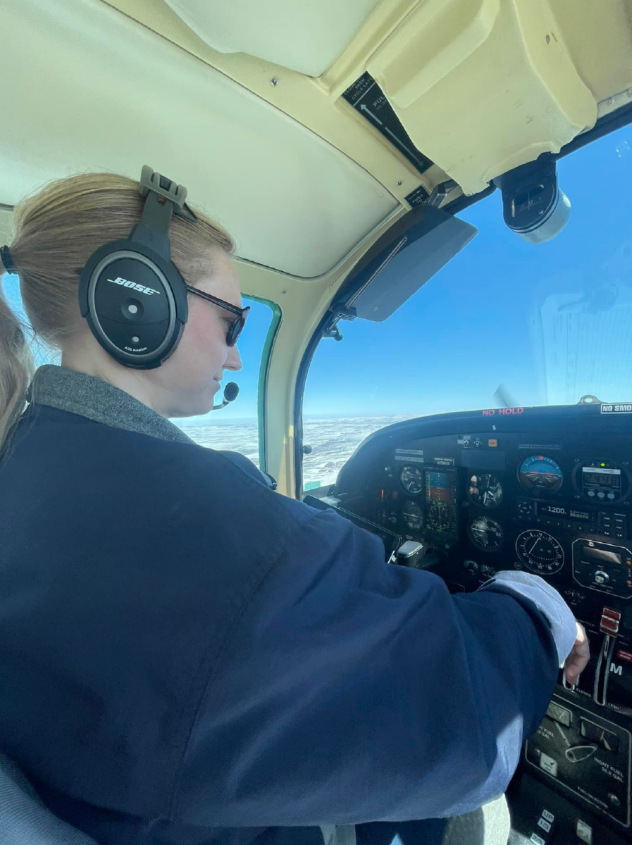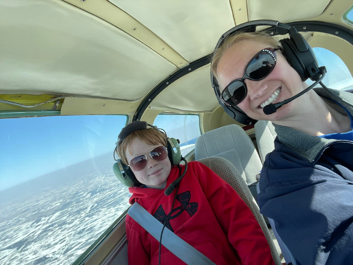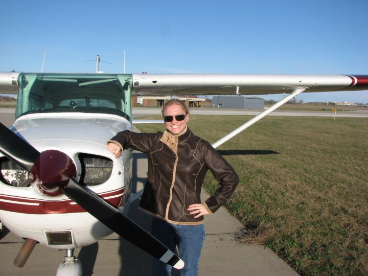 Her flight training started at Yankton (YKN) in a Cessna 172. Currently she flies a Grumman Tiger with Brookings Aerosports Unlimited, Inc. Flying Club at Brookings (BKX). She is working on her Instrument Rating.